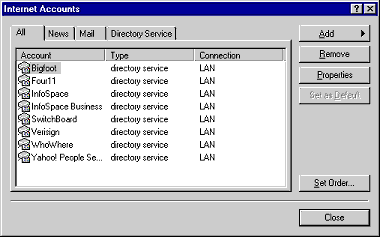2. Highlight the appropriate account (which will ususally be lsited as 'mx.domain.com') by clicking on it with your mouse, then select 'Properties'.