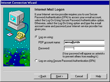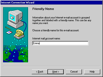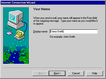 • Enter a name in the box to identify the user of the new mail account. e.g. Emma Smith.