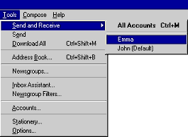 • If you've set up more than one address you can simultaneously check all e-mail addresses for new mail by clicking on the "Send and Receive" button on the main toolbar.