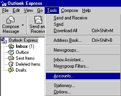 1. Select 'Tools', then 'Accounts' from the Outlook Express menu bar.